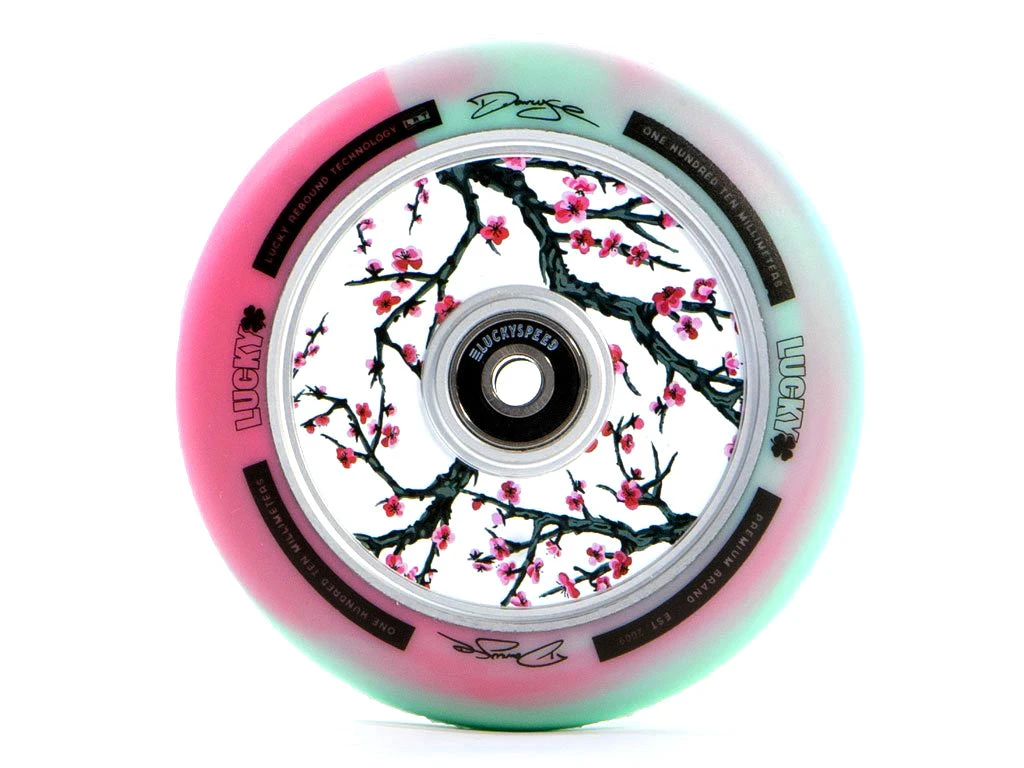 For Darcy’s first Lucky Signature product he wanted to include a graphic that stands out on a white background. This wheel features a dual colored core with pink accents to match the core graphics. Out of the box this wheel is ready to shred with pre-installed LuckySpeed Bearings.
