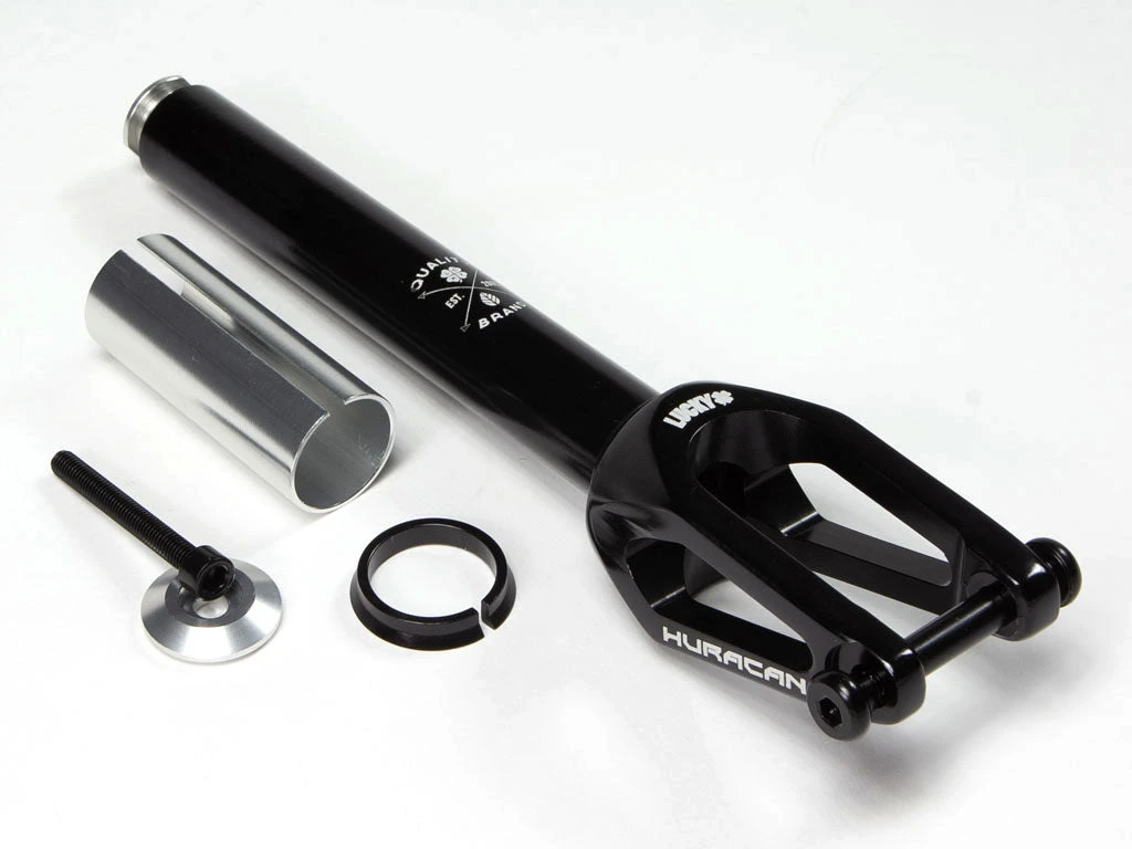The Lucky HURACAN™ IHC scooter fork was designed after we saw a huge request in the scooter industry for 120mm wheel compatible forks. Well we listened and the Huracan fork was born. Not only is the Huracan perfect for foot jams, nose blunts, and crooks, but it also looks super sick, so pick one up and customize your whip.